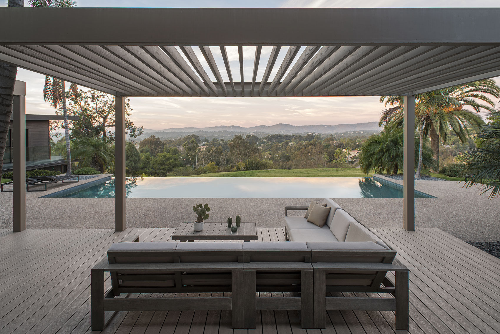 Que un matrimonio de clientes reincida en convocar a un arquitecto para un nuevo proyecto es siempre un placer para el profesional. Que lo haga en otro extremo del continente y encomiende la reforma integral de su nueva casa en la costa Oeste de los Estados Unidos al autor de su anterior vivienda en Buenos Aires, multiplica la gratificación. La casa está situada en las afueras de San Diego, California. Construida con el sistema de steel framing típico americano, se desarrollaba en una planta, había sufrido varias modificaciones y presentaba características tanto a nivel funcional como estético que volvían imperativa una intervención que la adaptara a sus nuevos propietarios. Una de las principales decisiones fue construir una planta alta donde emplazar la suite principal con vestidor. También agregar una serie de galerías que dotaran a la casa de espacios de sombra y proporcionaran dinamismo a las fachadas. Además del nuevo techo con un gran alero, se proyectaron cinco pérgolas de madera: en el ingreso al garage, en la entrada principal, en la zona de los dormitorios de los chicos y otras dos en la fachada que da al valle. Así, en un clima casi sin lluvias y con una temperatura ideal en todas las estaciones, se generaron numerosos espacios donde disfrutar de la vida outdoors a lo largo de todo el año. Como remate del cambio radical que se imprimió en la casa, los exteriores pasaron del color blanco con ventanas celestes, al mismo tono del canto rodado presente en el entorno. Todo –paredes, aberturas y pérgolas– se pintó de un color arena en armonía con el paisaje. Concluida la intervención de la casa principal, se pasó a una segunda fase: una casa para huéspedes.