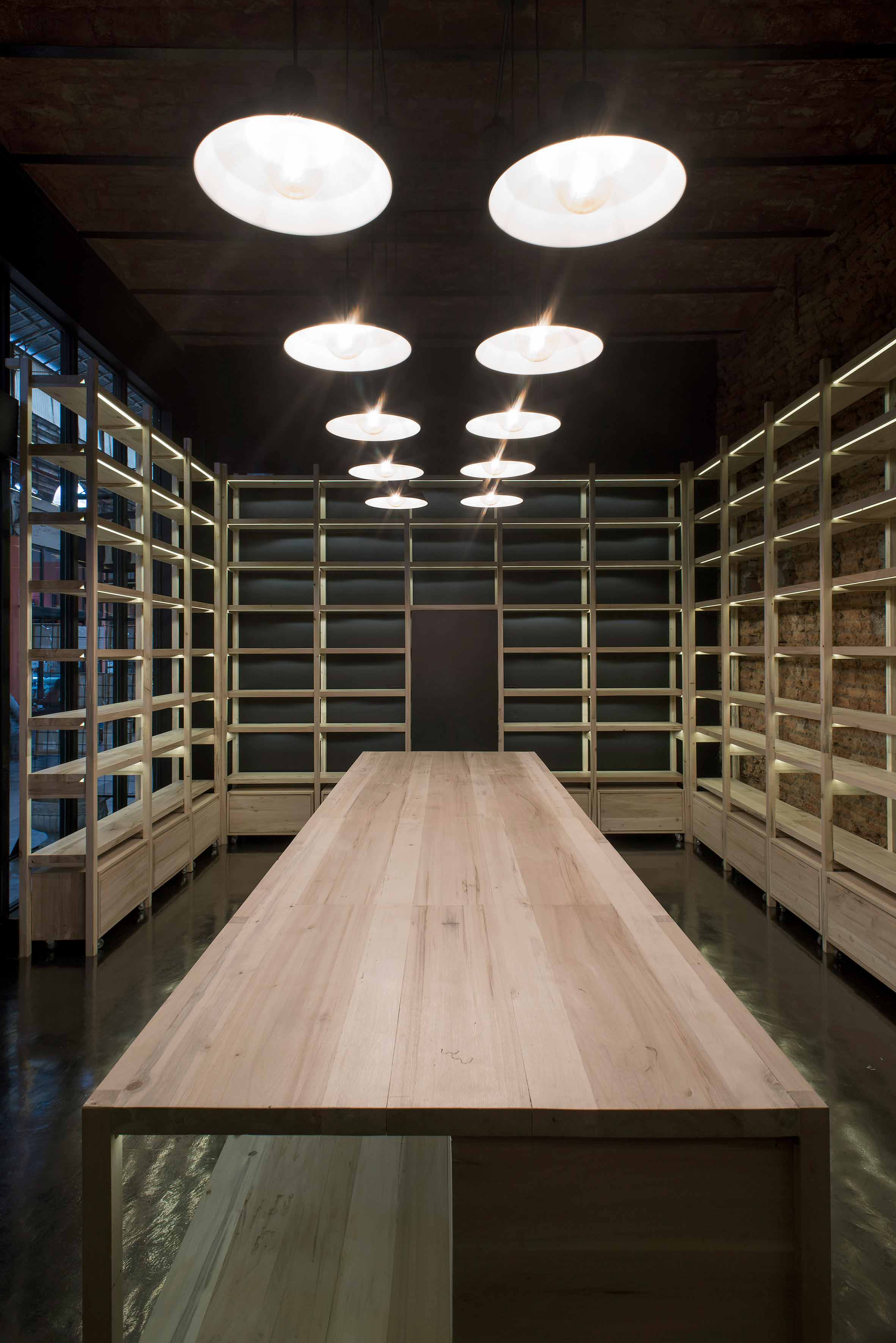 This was a custom made project for this store which sells natural and organic products. In tune with brand values, all approved materials consisted mainly of certified wood from sustainable forests and black ironwork. A special way to exhibit the product and detailed, well thought out illumination, complete this design driven by the ultimate goal of making the product stand out.