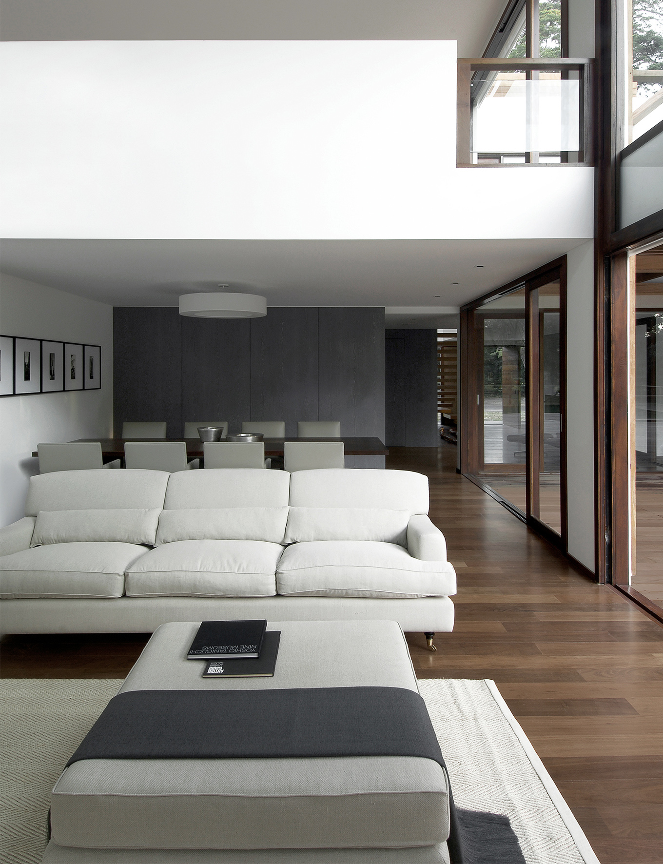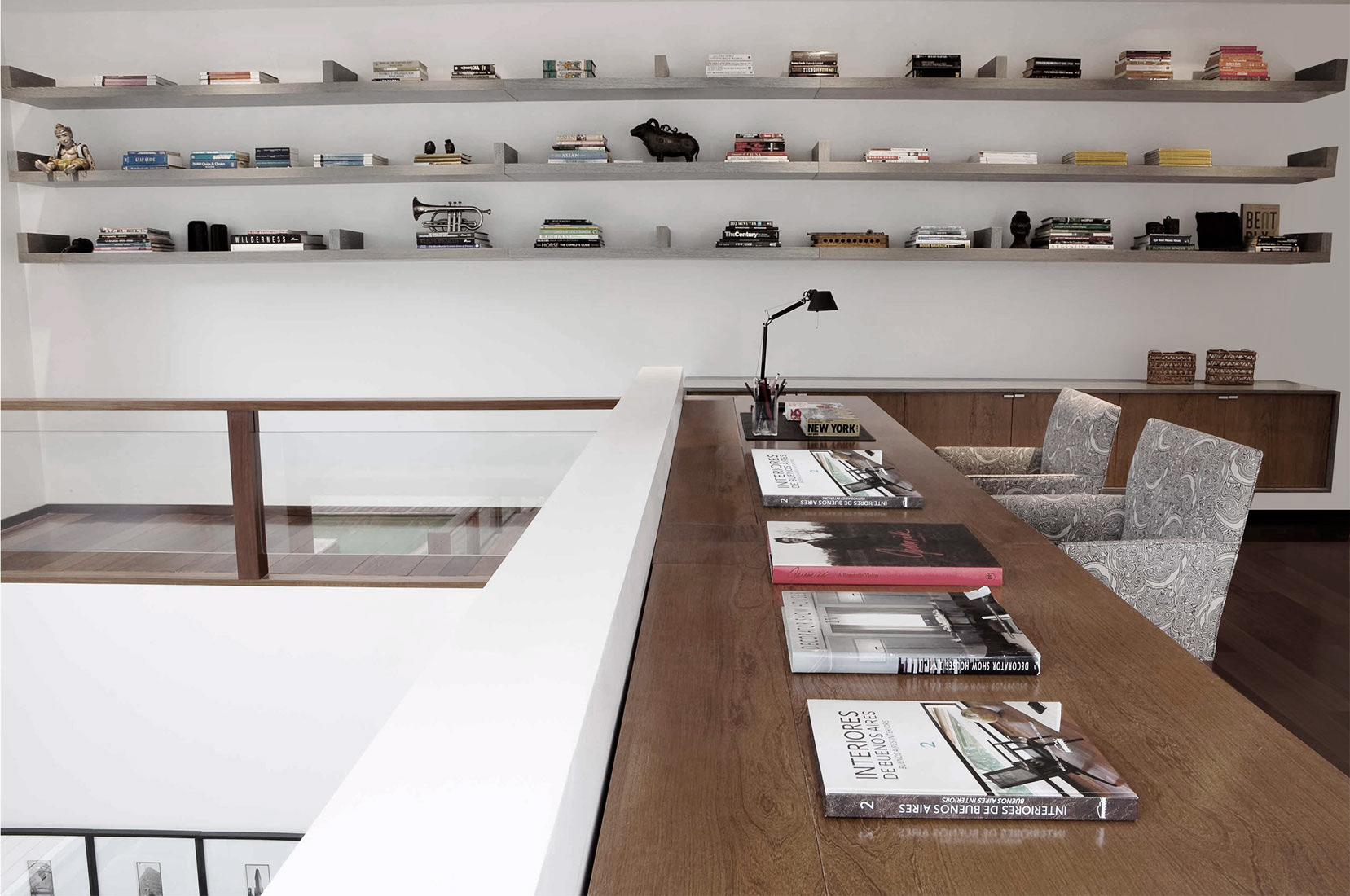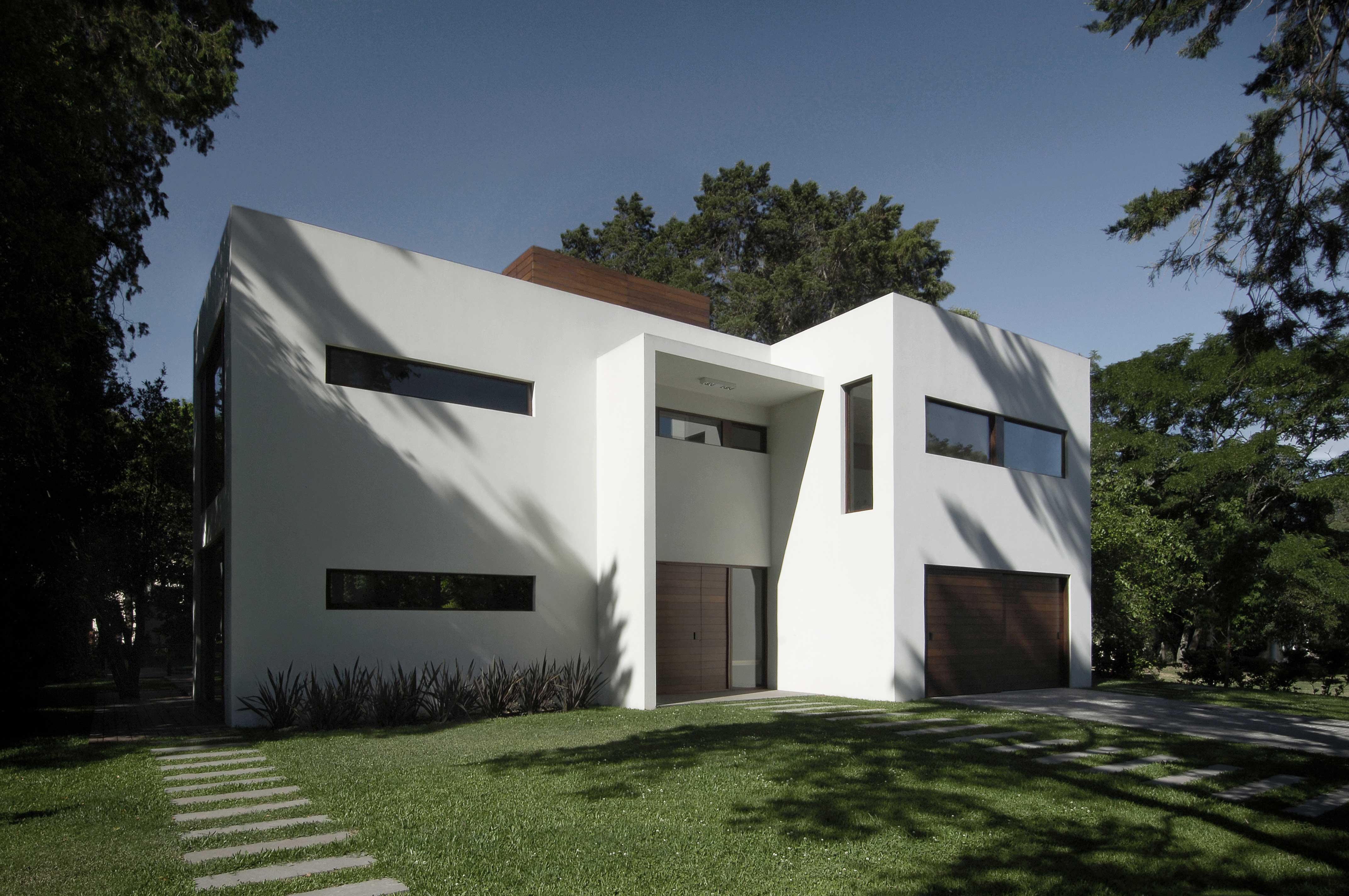 Inside a gated community, located at the end of a street facing a cul-de-sac, the lot on which this house is built was special because of its lush grove. Both the commissioners and the Studio truly valued the existing vegetation so they took it as a starting point for this project. The L-shaped layout opens out into the back and to one side of the building, with a view to green spaces shared by the community. Between these two glass facades which embrace their surroundings, a wooden structure serves as a terrace on the top story, creating a semi-covered area on the ground floor. A deck made of the same wood connects the house to the swimming pool, offering visual continuity and completing the social area of the project. Inversely, the front façade and the other lateral, where the service areas are located, have smaller openings aiming to protect the privacy of those dwelling in the house while also increasing their sense of refuge. The architectural language here is refined, with touches of modernism, daring strokes, and a will to honor austerity by reducing the use of building materials. Wood takes center stage since it is used in openings, decks and flooring in the social areas of the house, nurturing a continuous exchange between inner and outer spaces. Along the same lines, to ensure visual continuity, green was the chosen color for pool coverings so that it could blend into the surrounding vegetation. The Studio was integrally in charge of the design, from the first sketches down to the last details of the interior design, which guaranteed the project was well coordinated and harmonious.