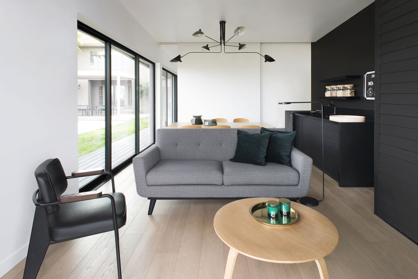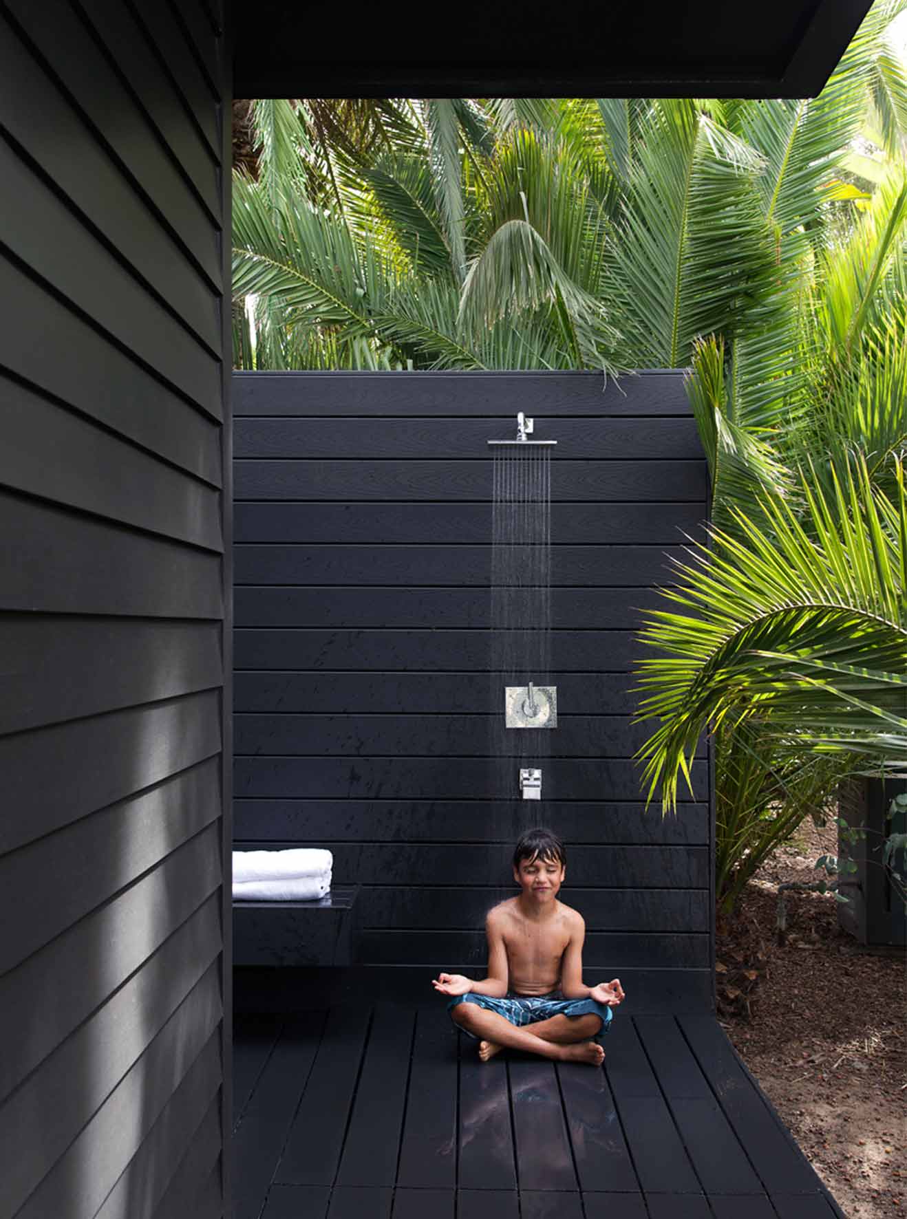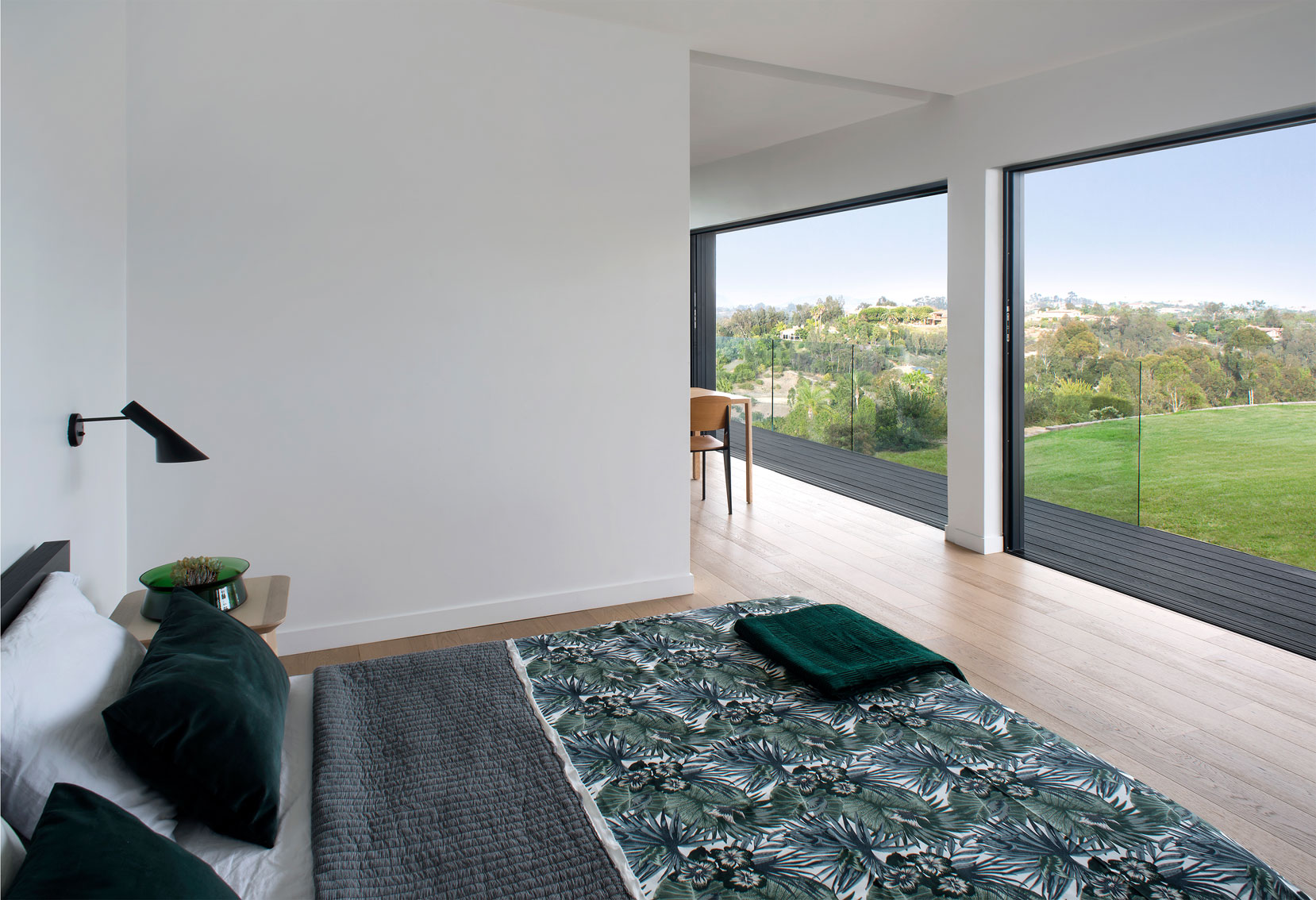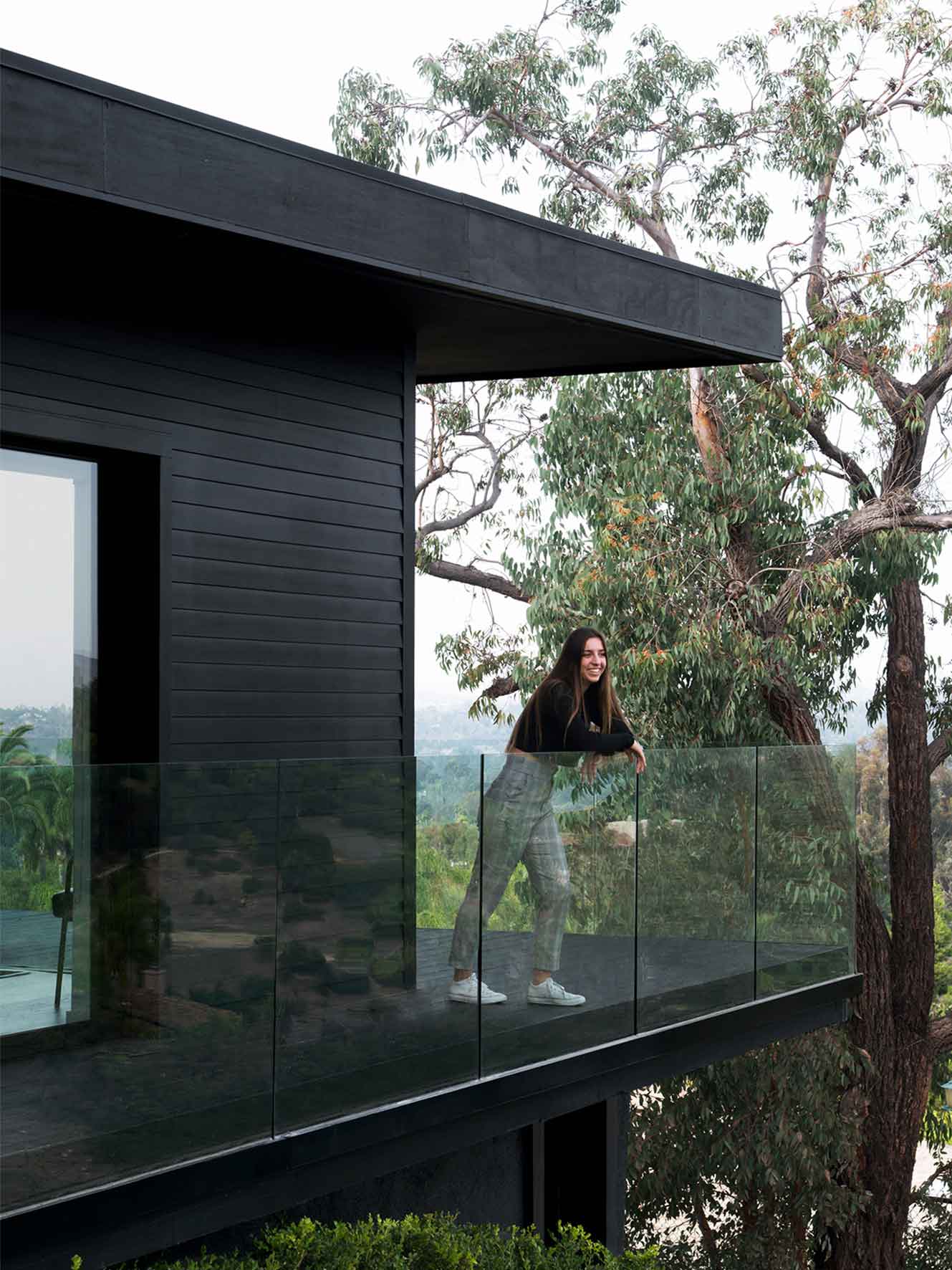 Once the main house in the Rancho Santa Fe area in San Diego was redeveloped [see House in San Diego], the owners commissioned the Studio to design and oversee the construction of an adjoining building that could house family guests. Following the style of Richard Neutra and the architecture prevalent in California in the 50’s with its traditional siding, the aim was to open the construction towards the valley to enhance the views which were already striking. The house is equipped with everything the family and their guests need to ensure a pleasurable stay at the residence, enjoying the proximity between the owners and their guests but with enough independence for everyone as well. As a result, there is a family room with an integrated kitchen, two bedrooms – each with its own bathroom - and an outdoor bathroom which is for ideal use when returning from a surfing expedition or a beach outing. Everything interacts with the galleries, the deck and the swimming pool at the main house. The matte black color on the exterior grants the house its own identity, allowing a full integration into the landscape with absolute ease.