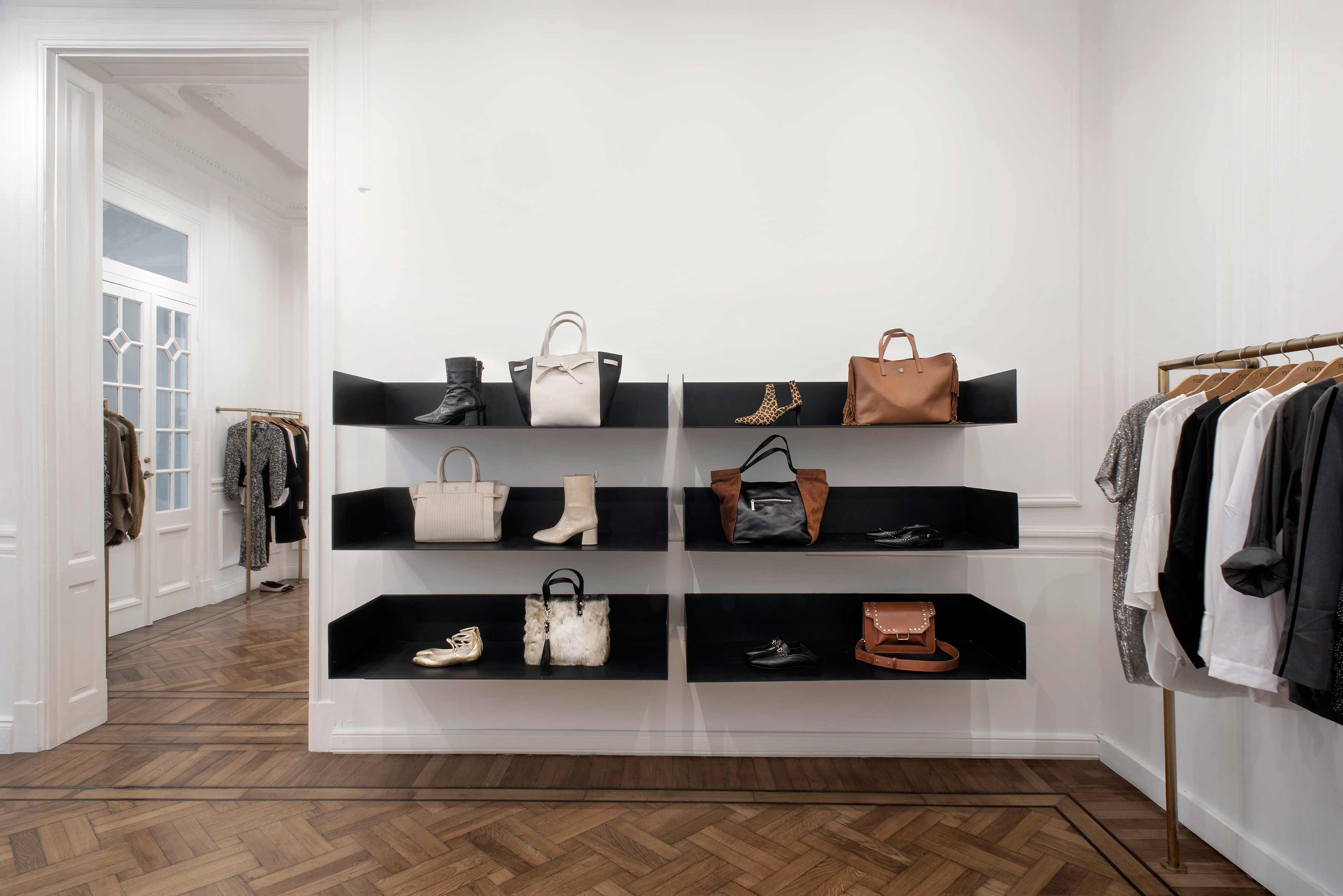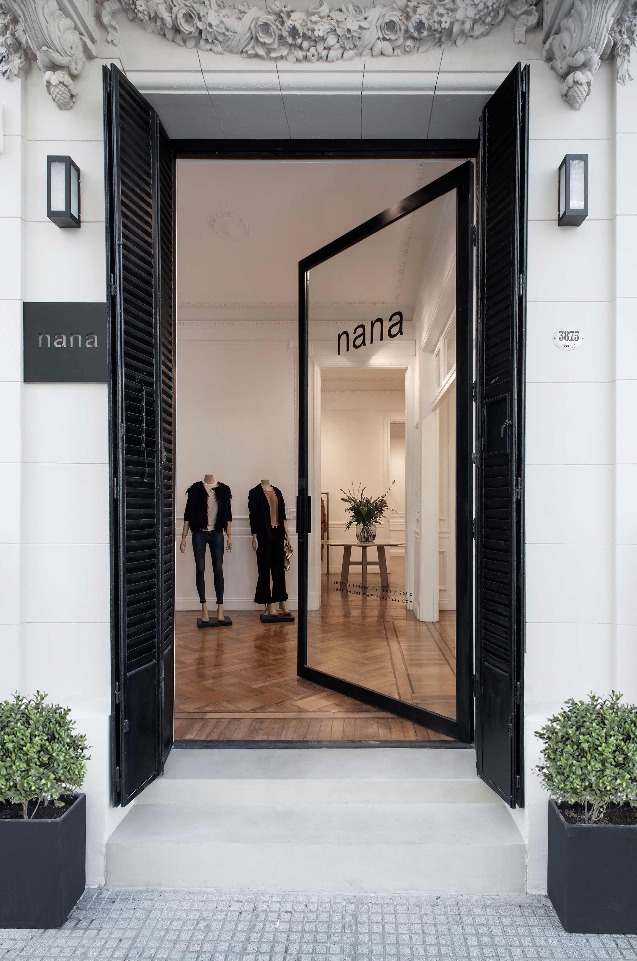 After these shared professional experiences, agreeing upon the strategies to transform the ground level of this antique house in the Palermo neighborhood ? located near the former zoo ? into the new Nana headquarters was not difficult. As is always the case when the Studio takes on projects involving French-style buildings, the goal was to preserve and enhance all classical elements while integrating them into a contemporary milieu. The ample layout was adapted to be functional as a store while merging the different spaces into the main display area.